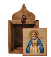 Икона рукописная св. Серафима Саровского. Доска из липы с сосновыми шпонками. Натуральные пигменты. Сусальное золото.