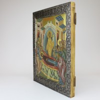 Липовая доска с левкасом от Мастерской Соборъ, натуральные пигменты, сусальное золото, басменный оклад